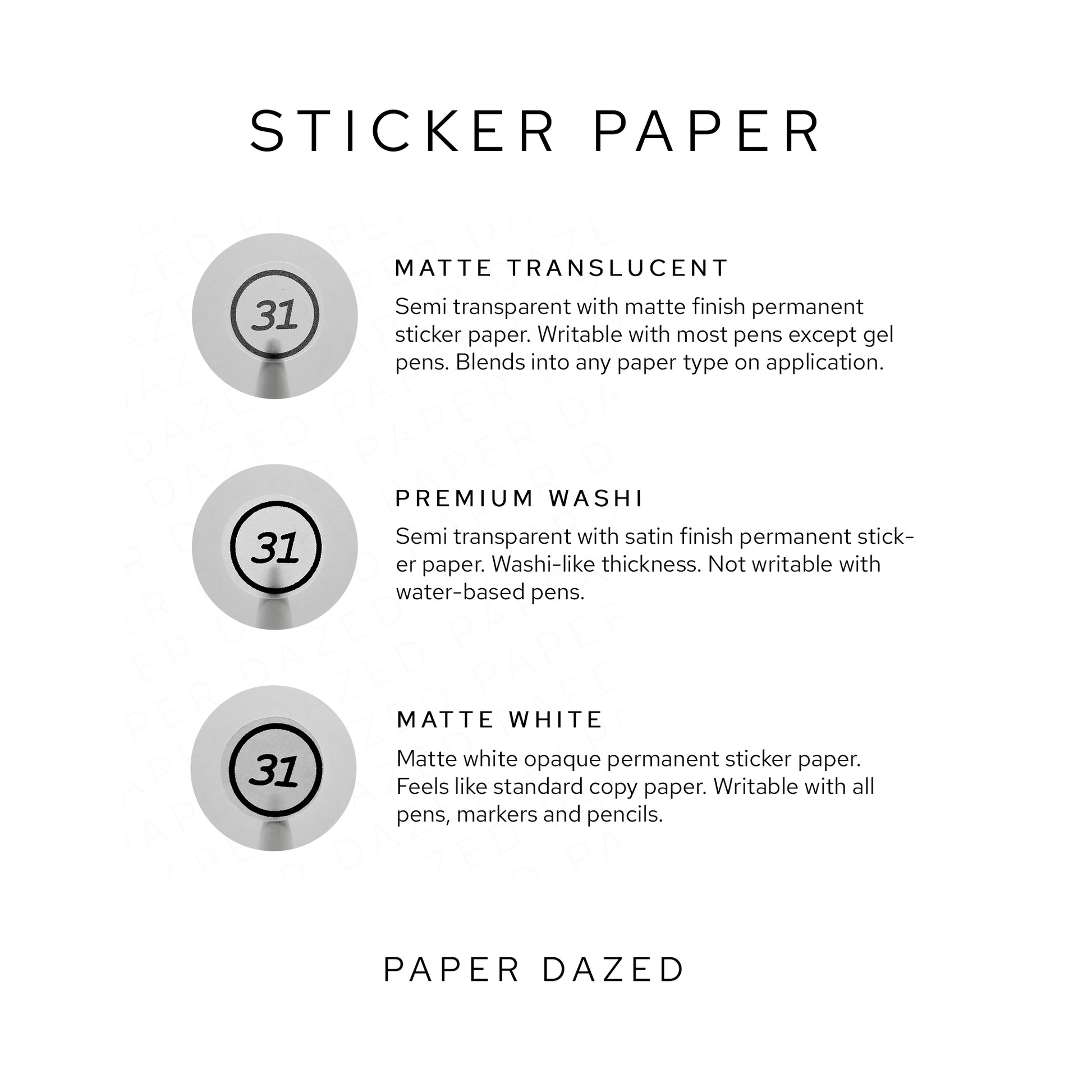 • Printed on matte translucent, premium washi or matte white sticker paper