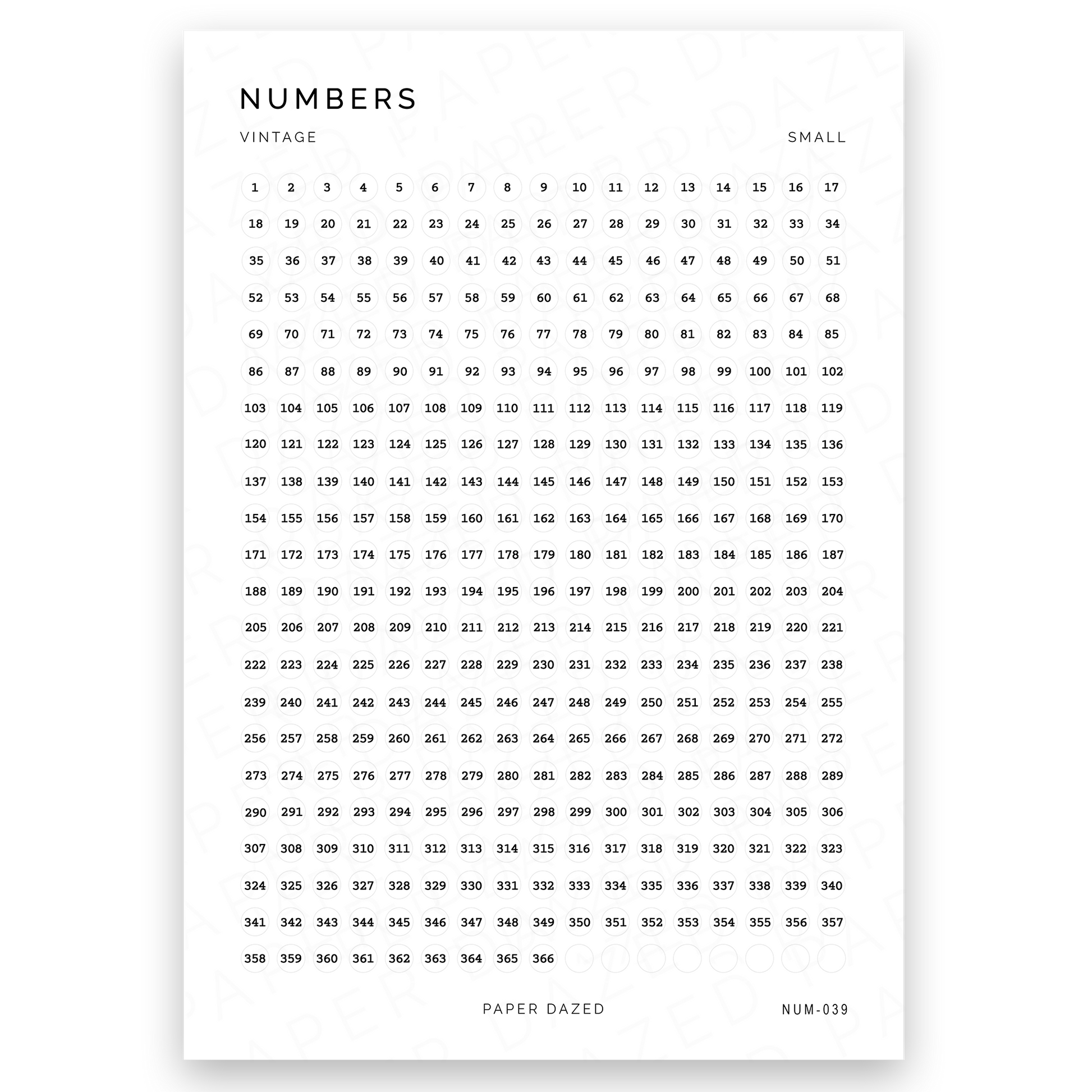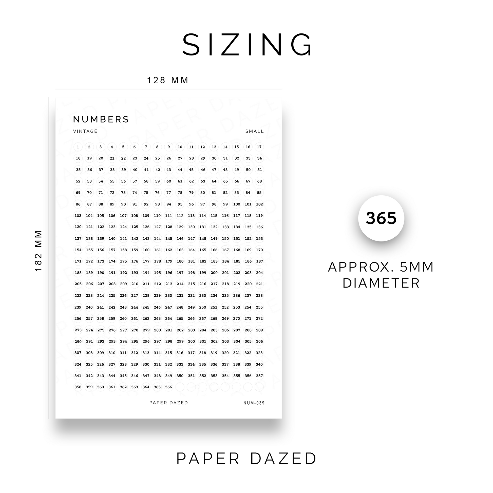 Stay organized and on track with our 1-365 Small Date Dot Number Stickers! Designed with a VINTAGE font, these tiny stickers are perfect for planners and journals. Easily create spreads and calendars or page trackers for a more efficient and hassle-free schedule. Keep things simple and stylish with our stickers.